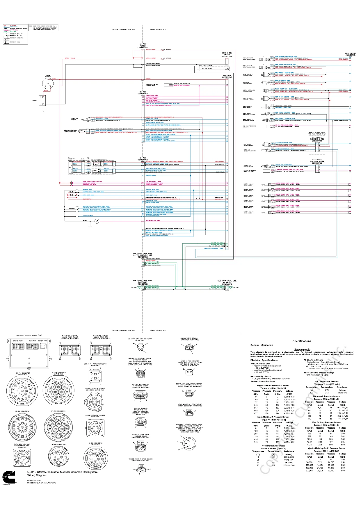 Cummins Engine QSK19 CM2150 Wiring Diagram 4022096