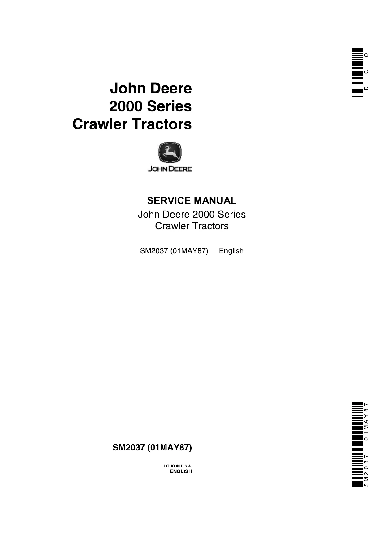 Instant download John Deere 2000 Series Crawler Tractors Service Manual!