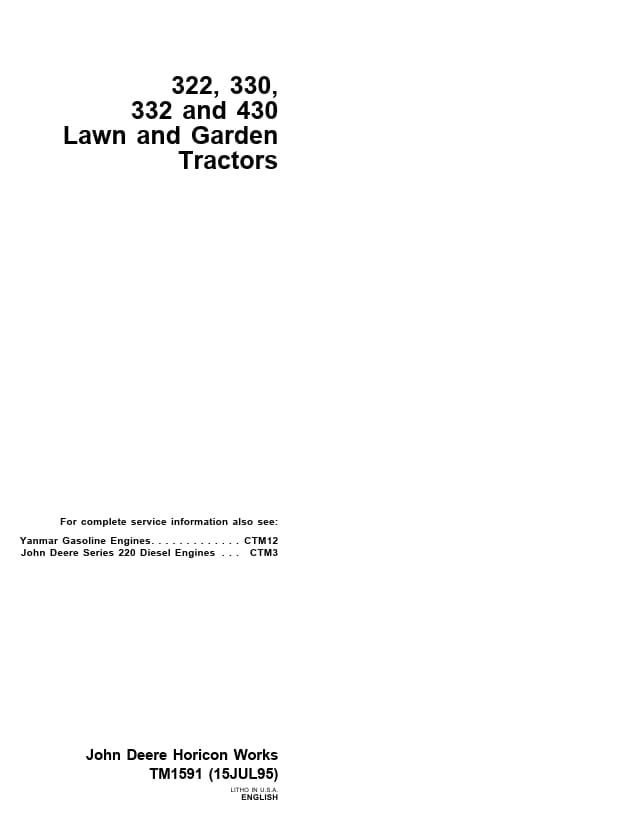Instant download John Deere 322/330/332/430 Lawn and Garden Tractors Service Repair Technical Manual!
