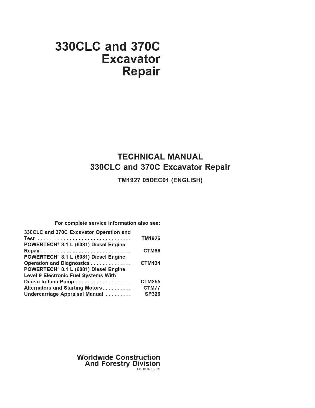 Instant download John Deere 330CLC and 370C Excavator Service Repair Technical Manual!