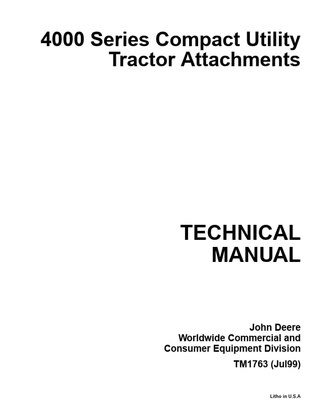Instant download John Deere 4000 Series Compact Utility Tractor Attachments Service Repair Technical Manual! A downloadable repair manual, also termed factory service manual, is a book of repair instructions that describes the maintenance, service and repair procedures for the complete vehicle. Its a digitally delivered repair book that covers all aspects of repair.
