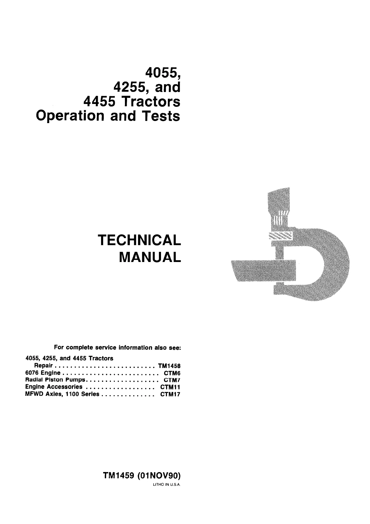 John Deere 4055 4255 4455 Tractors Operation and Tests Manual