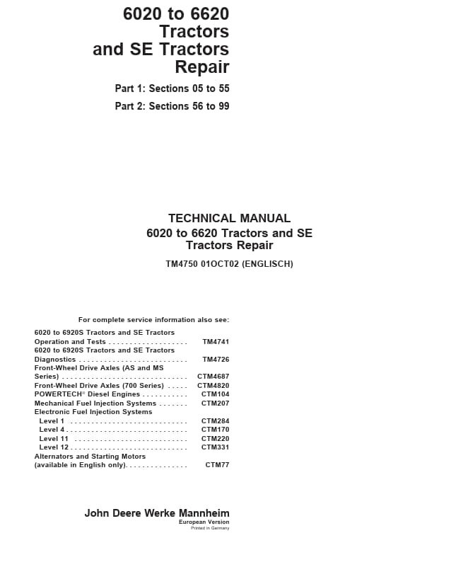 Instant download John Deere 6020 to 6620 Tractors and SE Tractors Service Repair Technical Manual!