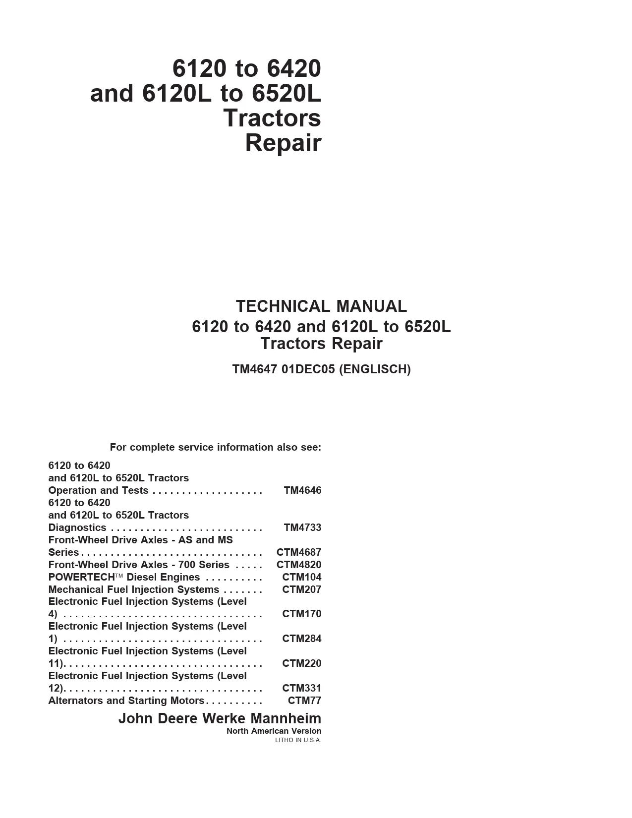 Instant download John Deere 6120, 6220, 6320, 6420,6120L, 6220L, 6320L, 6420L, 6520L Tractors Service Repair Technical Manual!