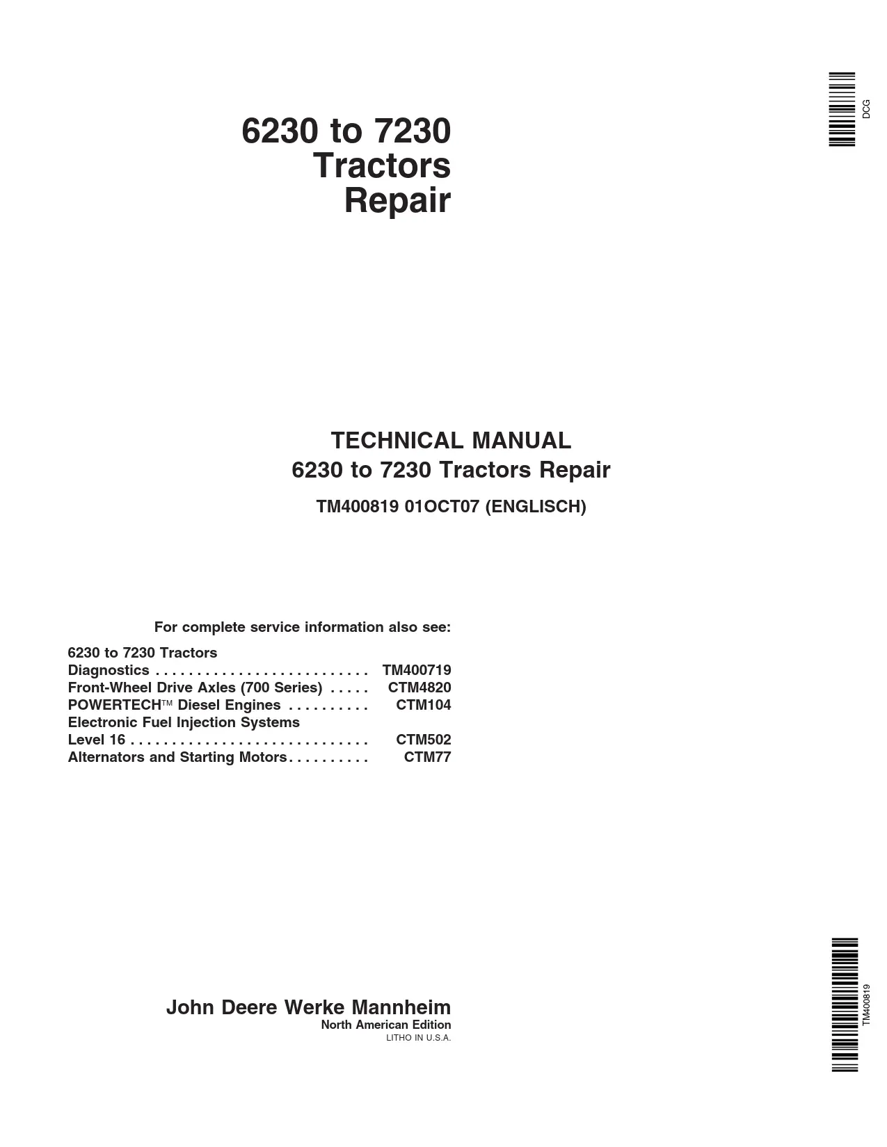 Instant download John Deere 6230,6330,6430,7130 and 7230 Tractors Service Repair Technical Manual!