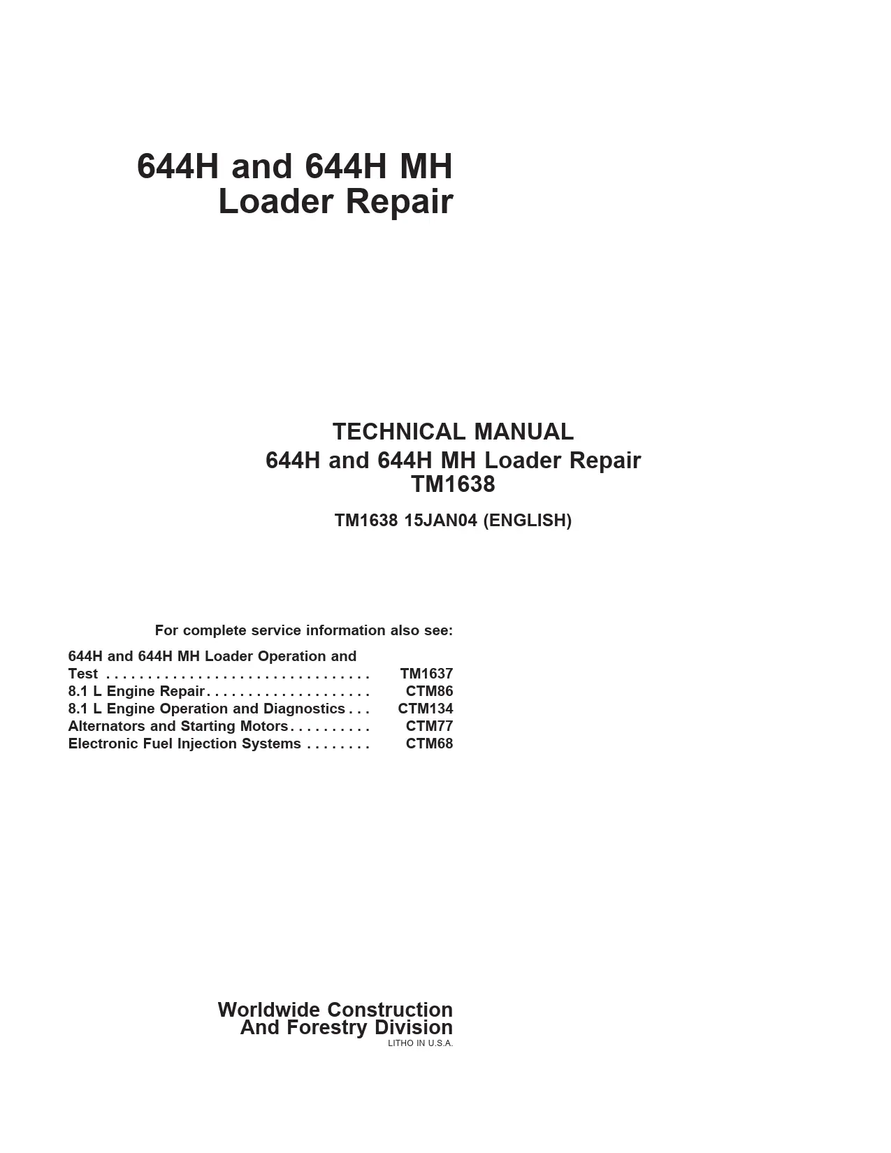 Instant download John Deere 644H and 644H MH Loader Service Repair Technical Manual!
