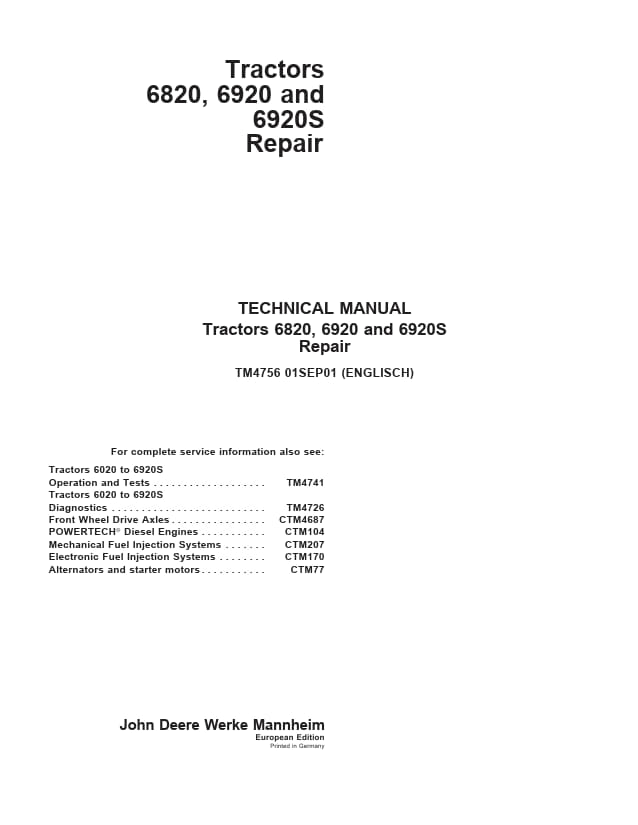 Instant download John Deere 6820 and 6920 and 6920S Tractors Service Repair Technical Manual!