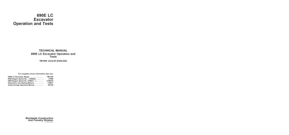 Instant download John Deere 690E LC Excavator Operation And Tests Manual!