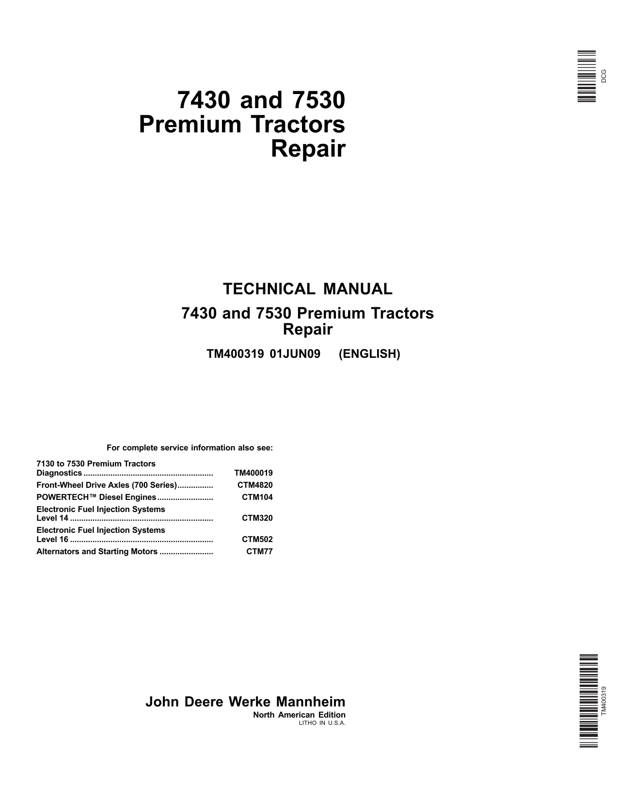 Instant download John Deere 7130,7230,7330,7430,7530 Premium Tractors Service Repair Technical Manual!