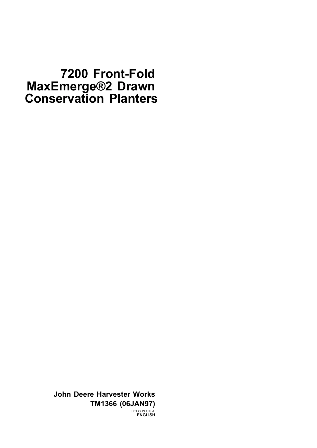 John Deere Conservation Planters Front-Fold 7200 tm1366 Technical Manual