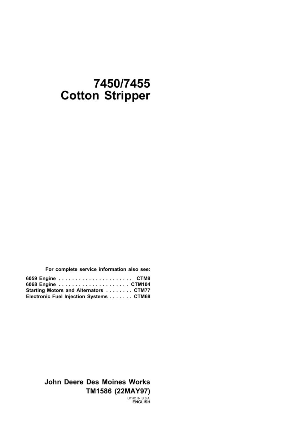 John Deere 7450 7455 Cotton Stripper Technical Manual