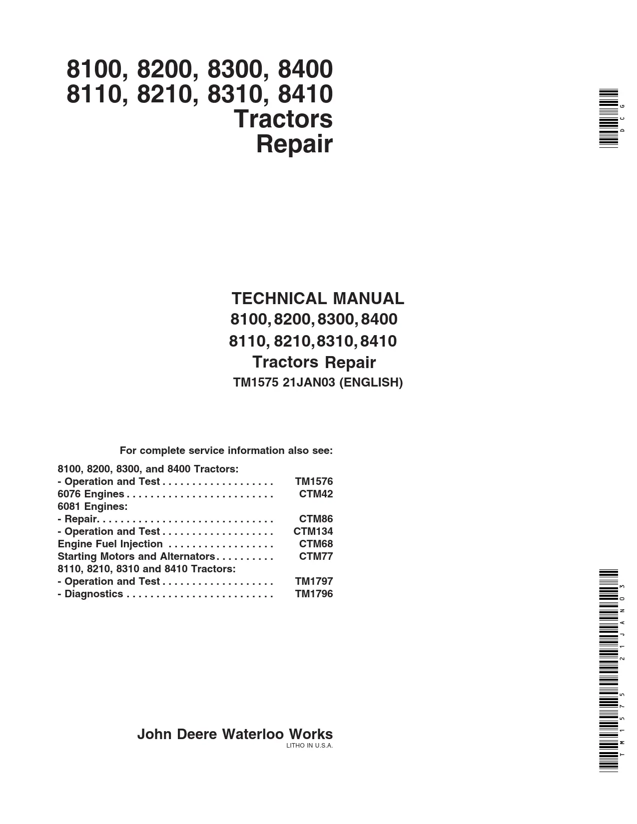 Instant download John Deere 8100,8200,8300,8400 8110, 8210,8310,8410 Tractors Service Repair Technical Manual!