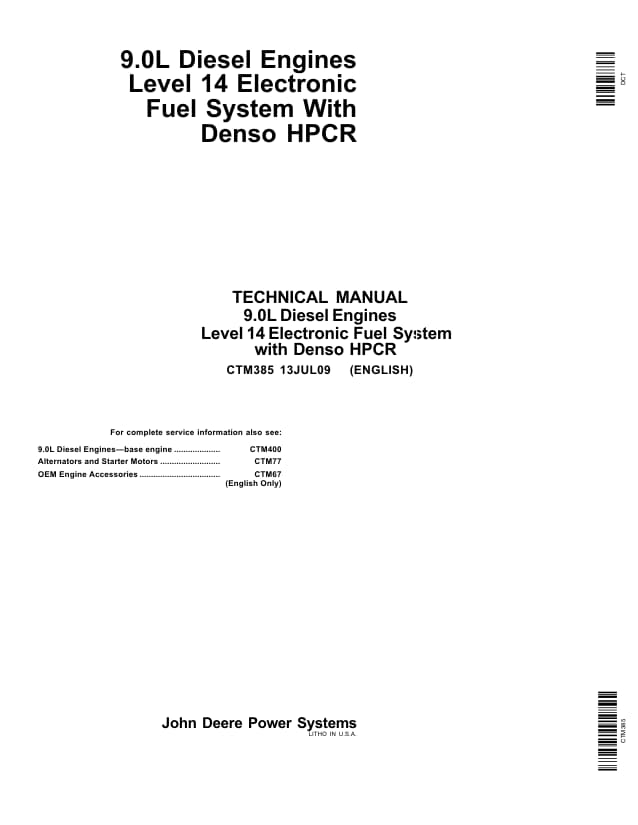 Instant download John Deere 9.0L Diesel Engines Level 14 Electronic Fuel System With Denso HPCR TECHNICAL MANUAL!