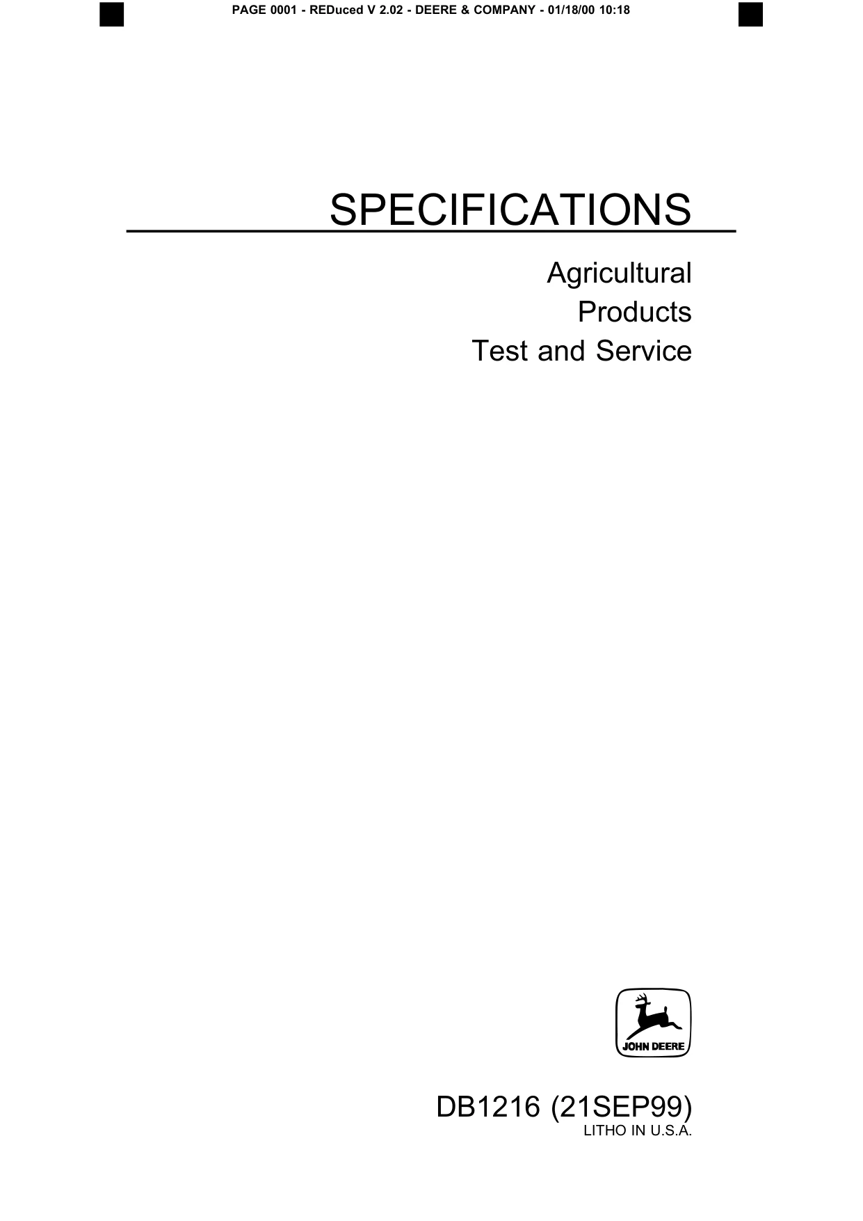 Instant download John Deere Agricultural Product DB1216 1999 Specifications Manual!