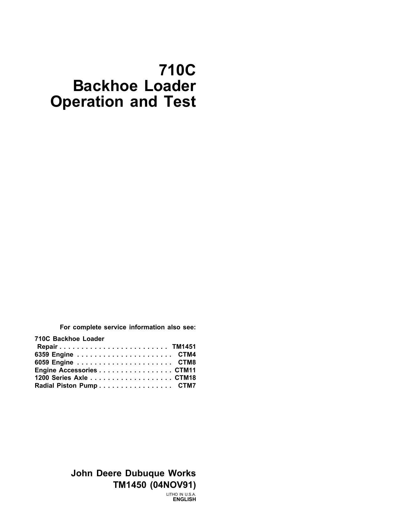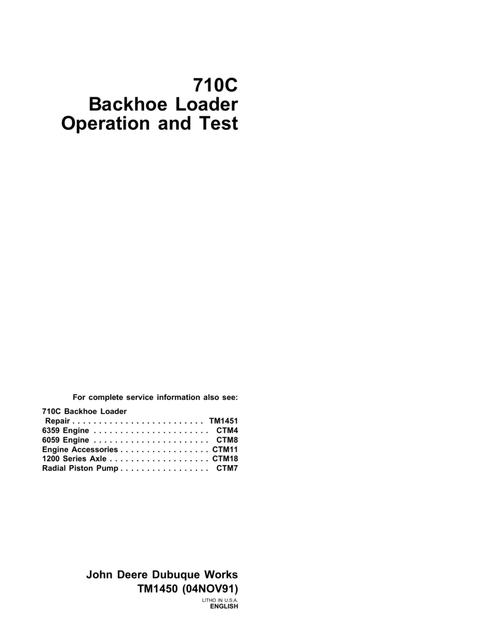 John Deere Backhoe Loader 710C tm1450 Technical Manual