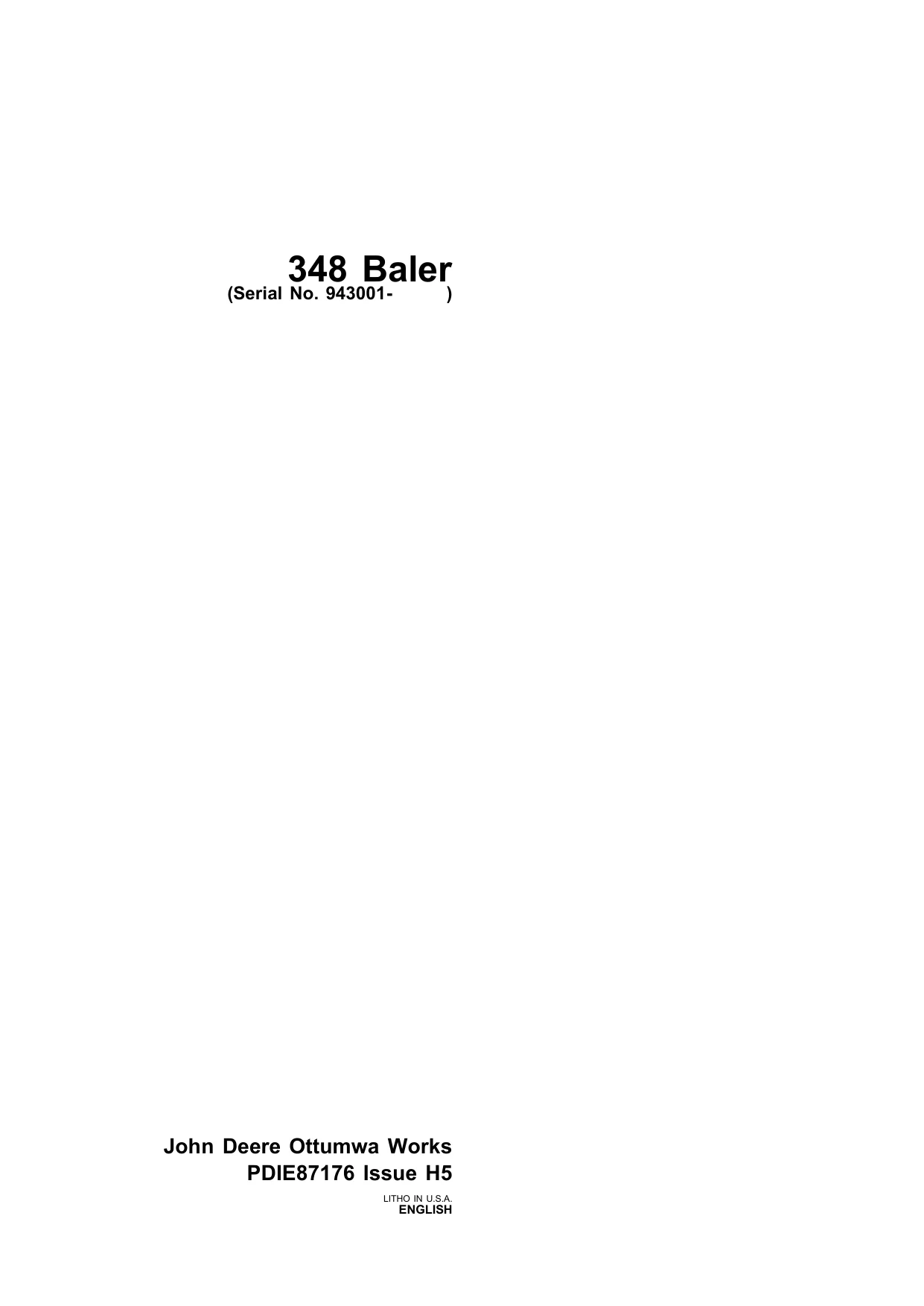 Instant download John Deere Baler 348 pdie87176 H5 Pre Delivery Instruction Manual!