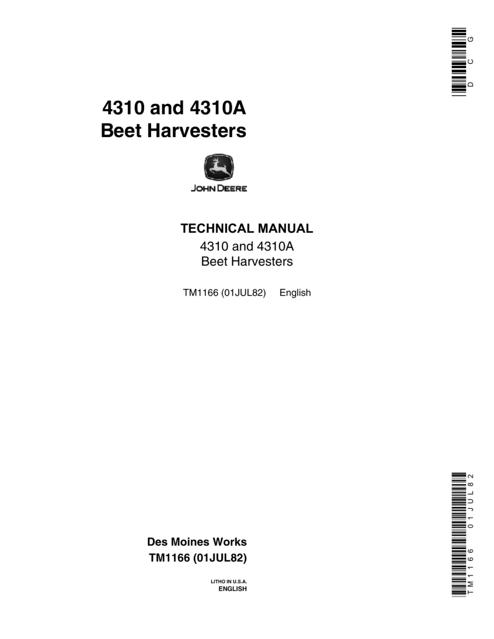 John Deere Beet Harvesters 4310 4310a tm1166 Technical Manual