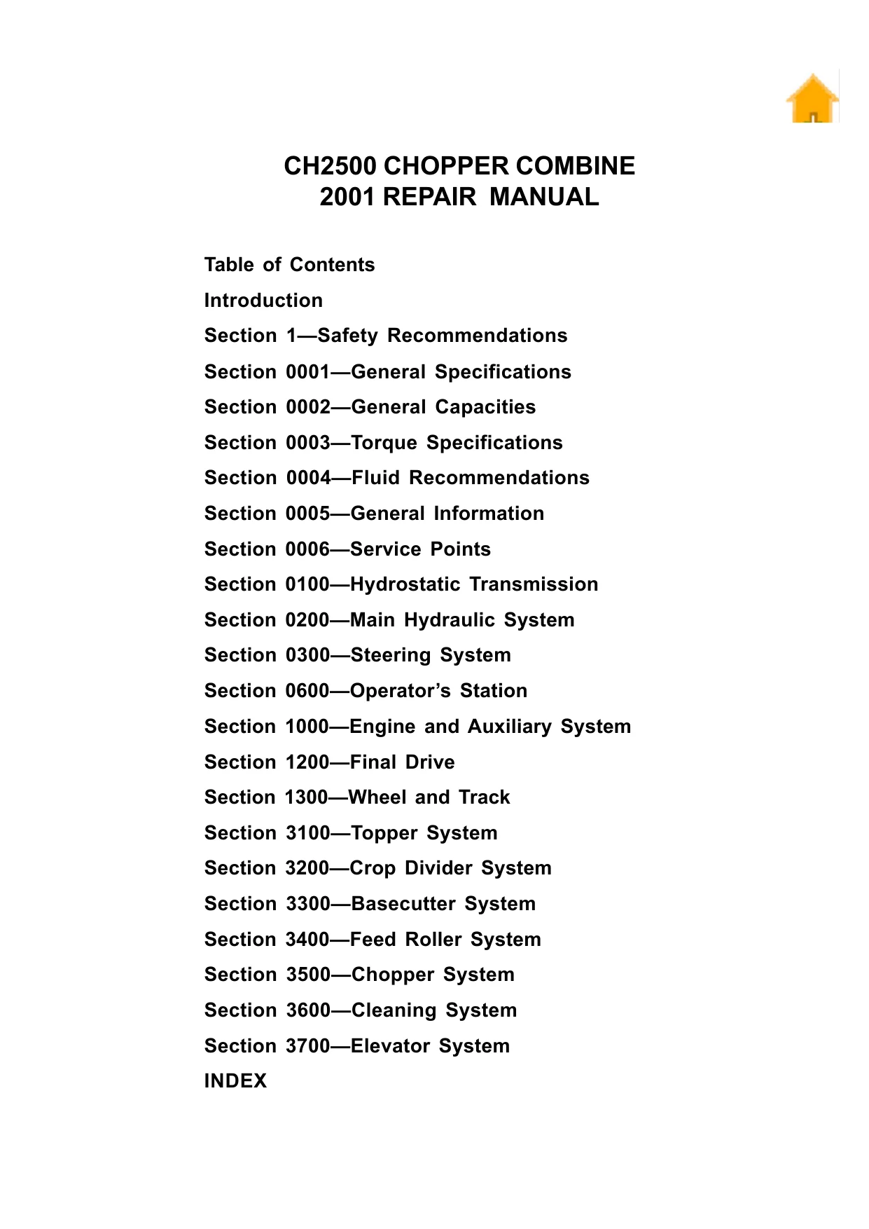 John Deere Choppper Combine CH2500 Repair Manual