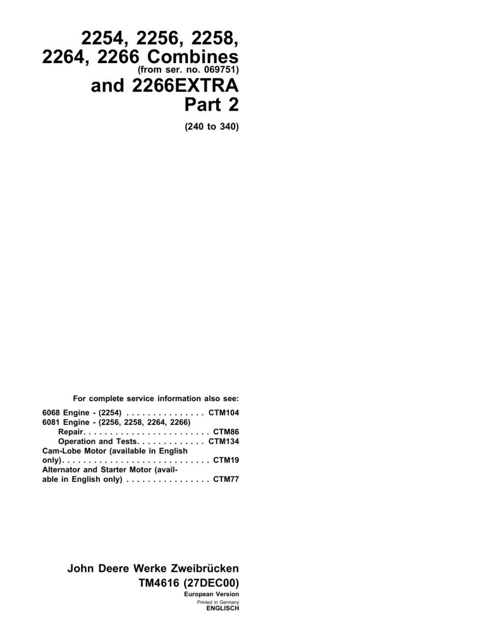 Instant download John Deere Combine 2254 2256 2258 2264 2266 Technical Manual!