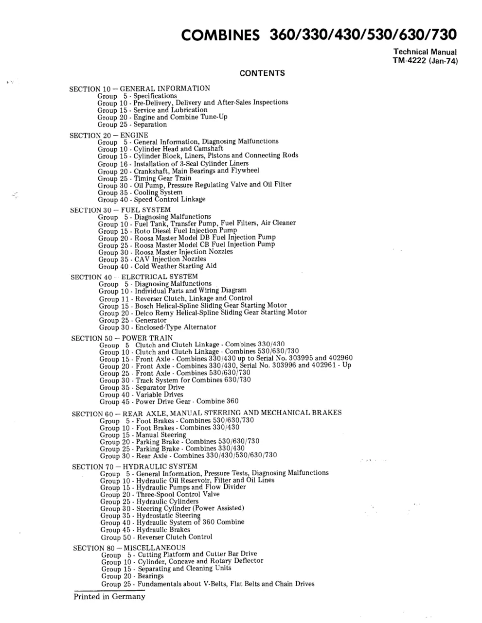 Instant download John Deere Combine 360 330 430 530 630 730 Technical Manual!