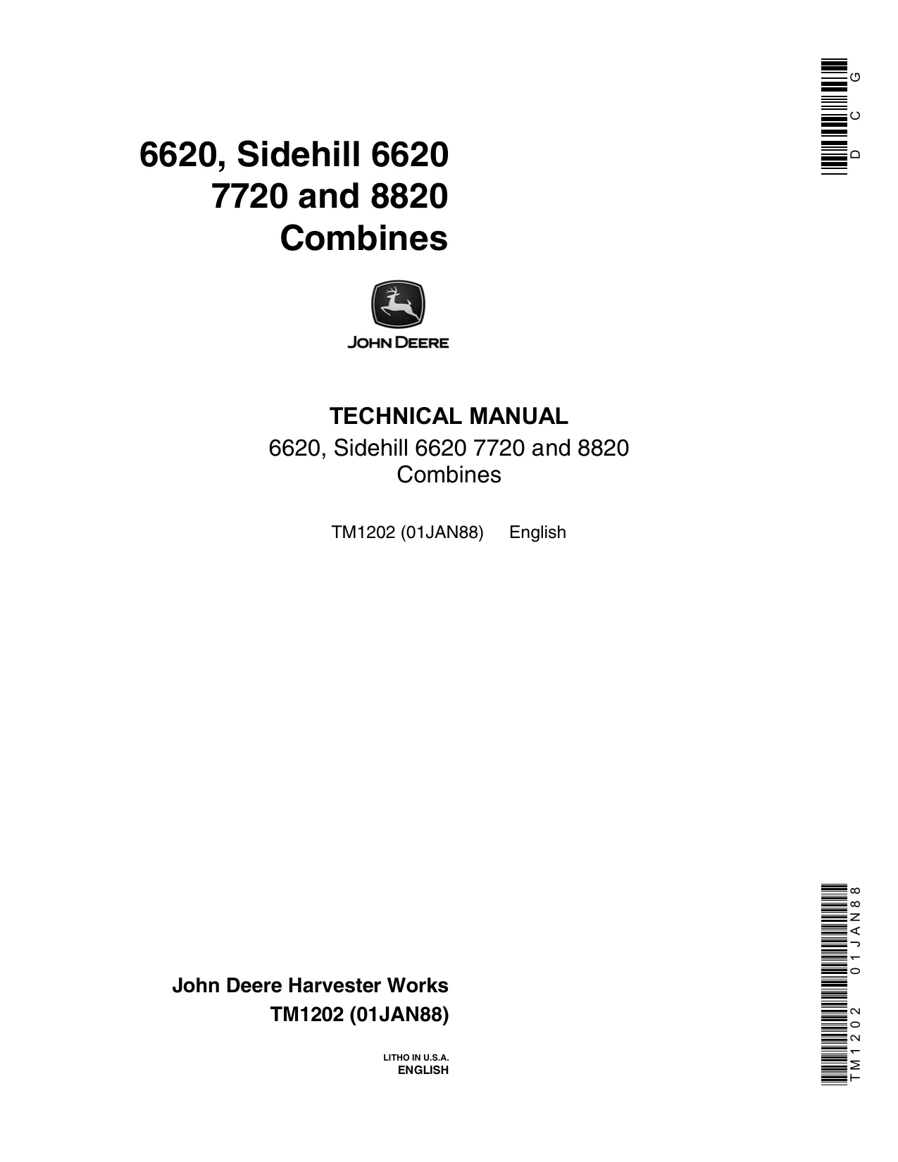 John Deere Combine 6620 Side Hill 7720 8820 tm1202 Technical Manual