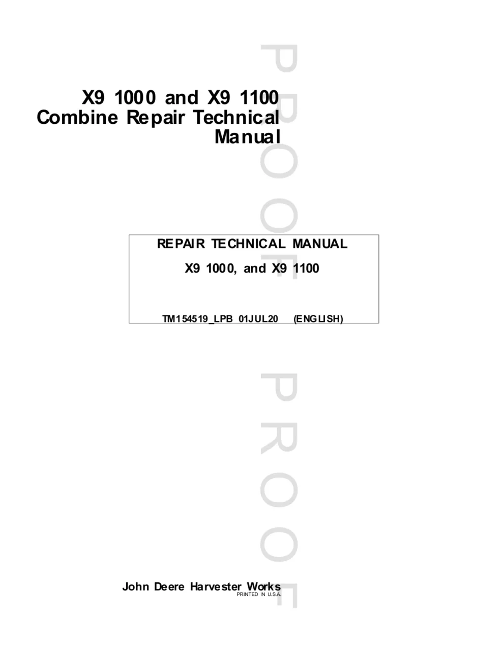 Instant download John Deere Combine X9 1000 1100 01JUL20 TM154519 Technical Manual!