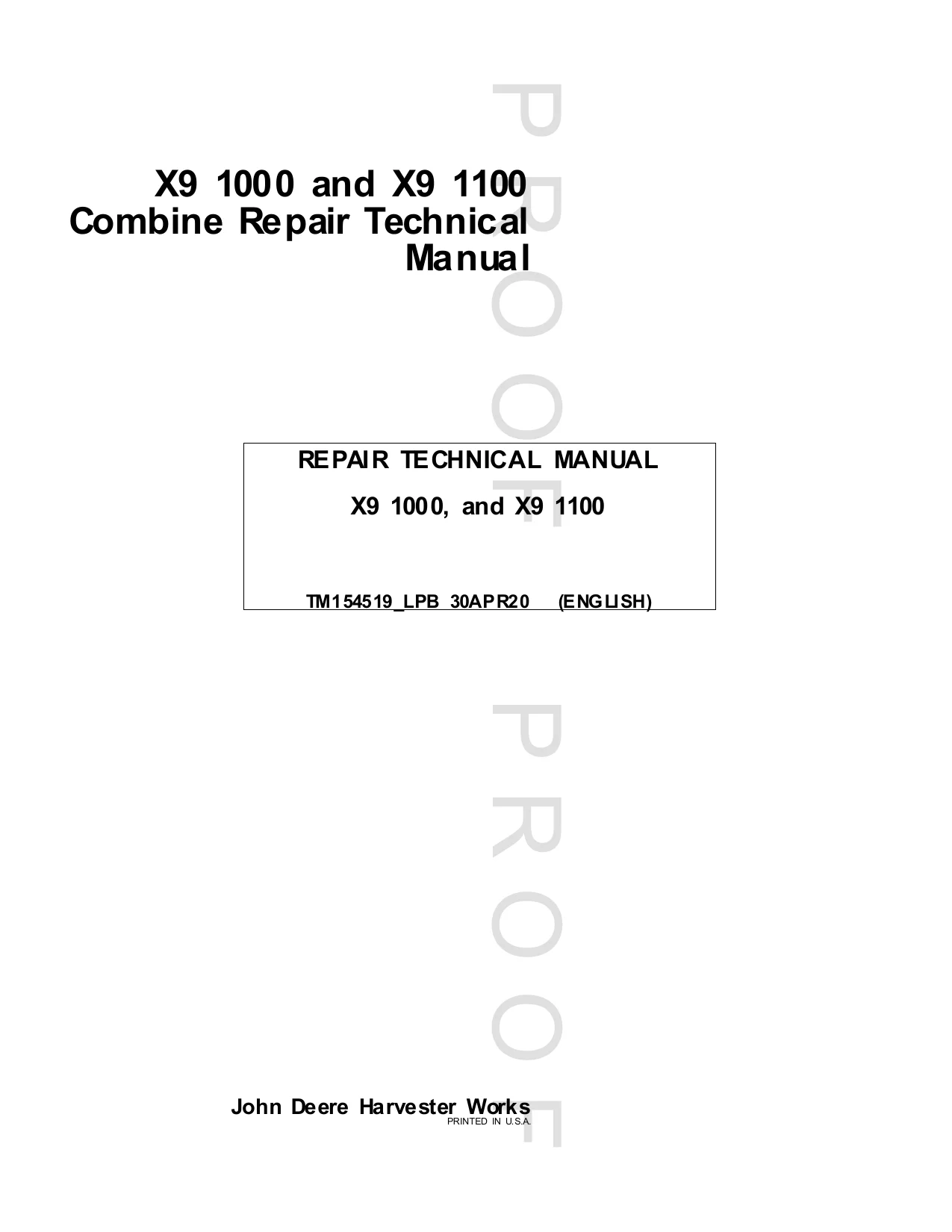 John Deere Combine X9 1000 1100 30APR20 TM154519_LPB Technical Manual