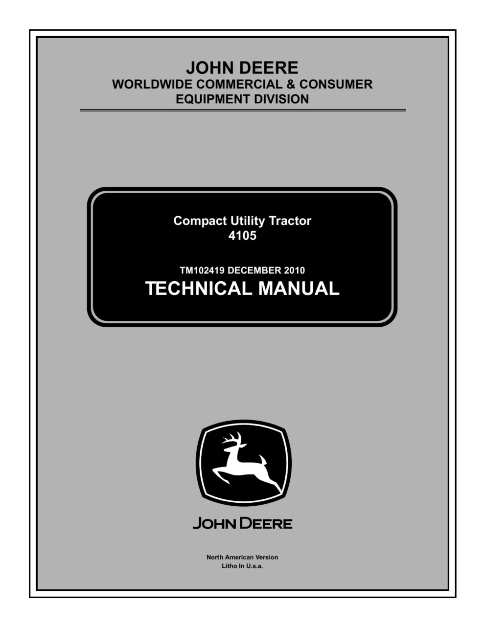 Instant download John Deere Compact Utility Tractors 4105 TM102419 Technical Manual!