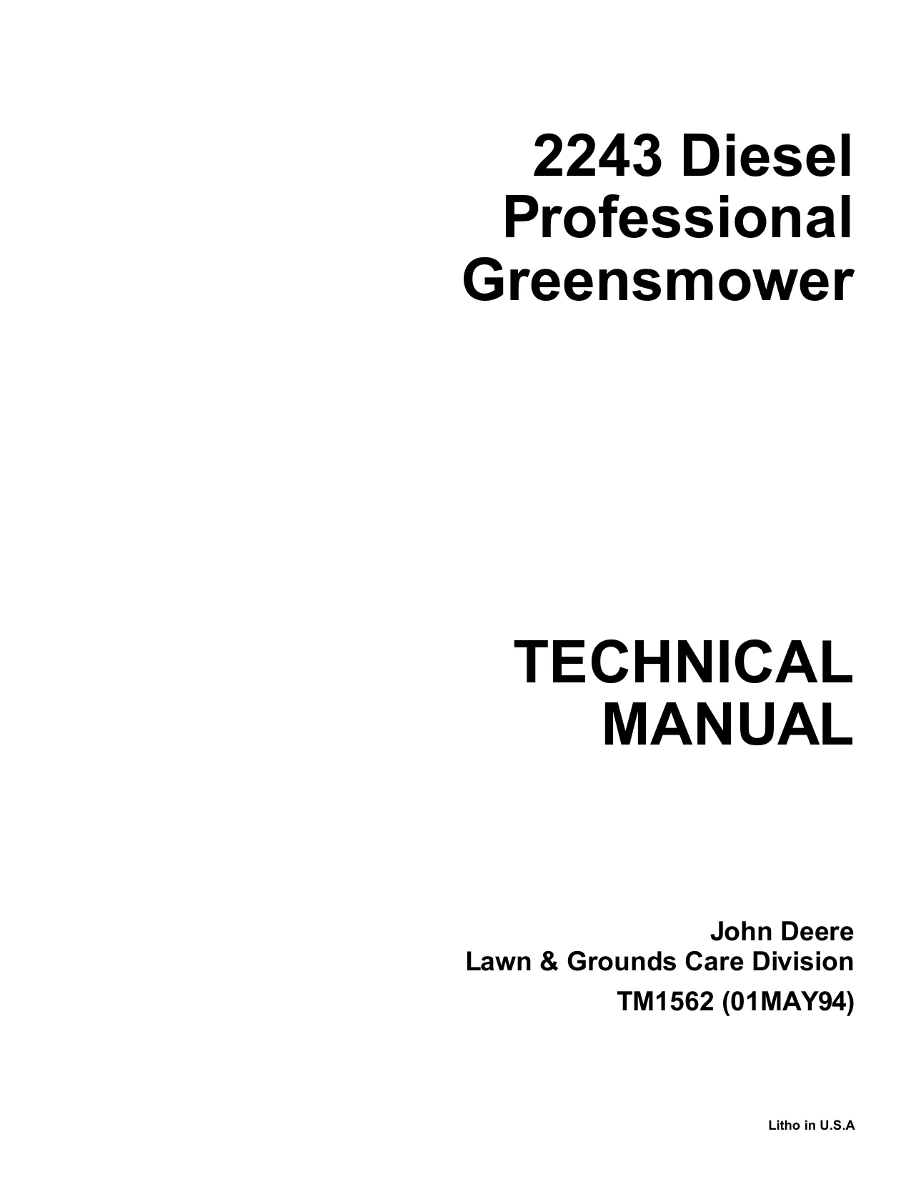 Instant download John Deere Diesel Professional Greensmower 2243 tm1562 Technical Manual!