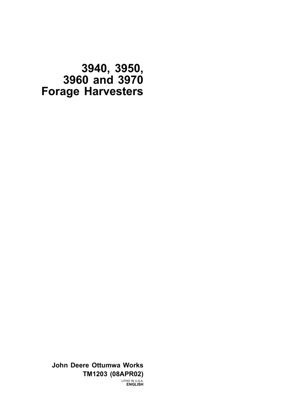 John Deere Forage Harversters 3940 3950 3960 3970 Technical Manual