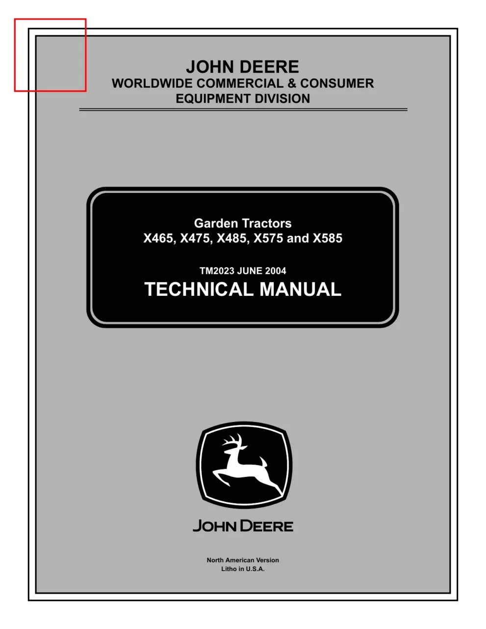 Instant download John Deere Garden Tractors X465, X475, X485, X575 and X585 Technical Manual!