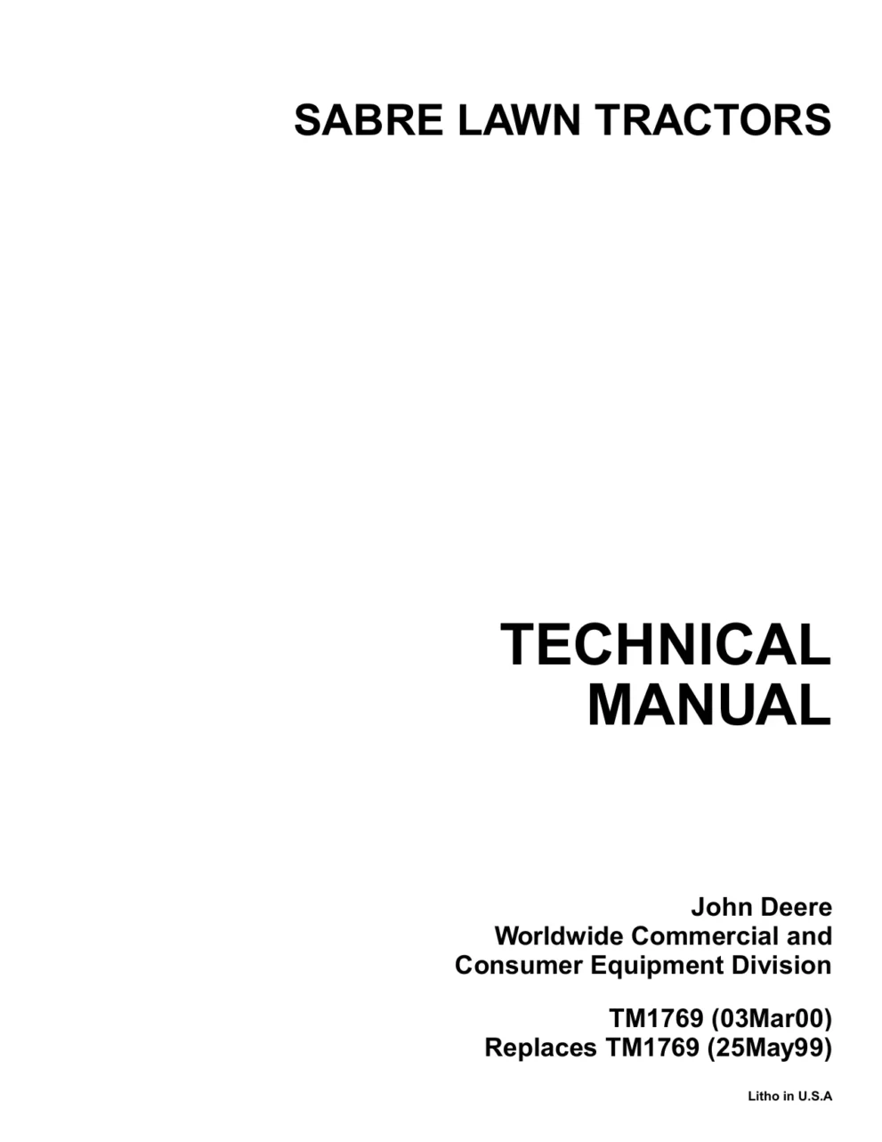 John Deere Lawn Tractors 1438GS – 2046HV tm1769 Technical Manual