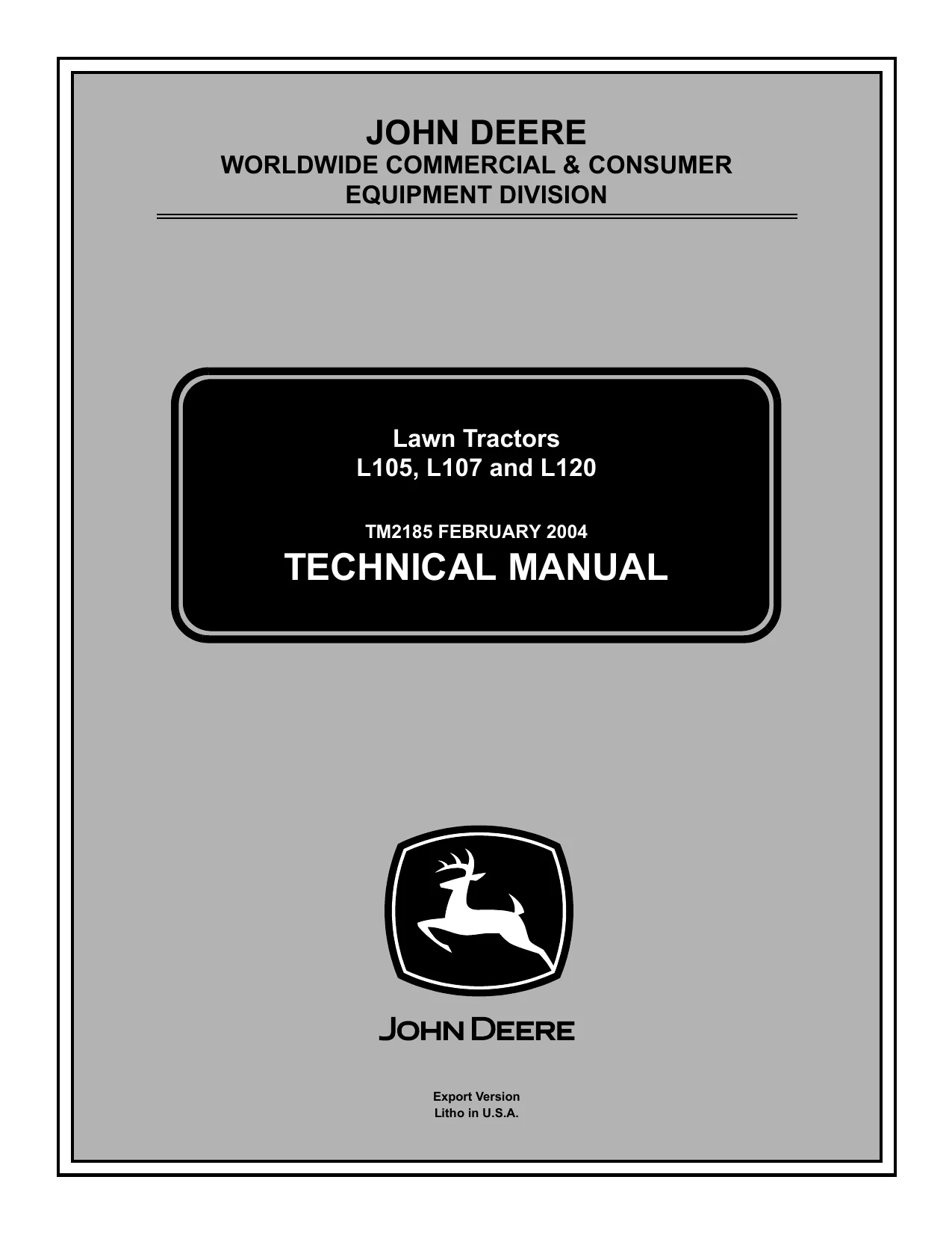 Instant download John Deere Lawn Tractors L105 L107 L120 TM2185 Technical Manual!