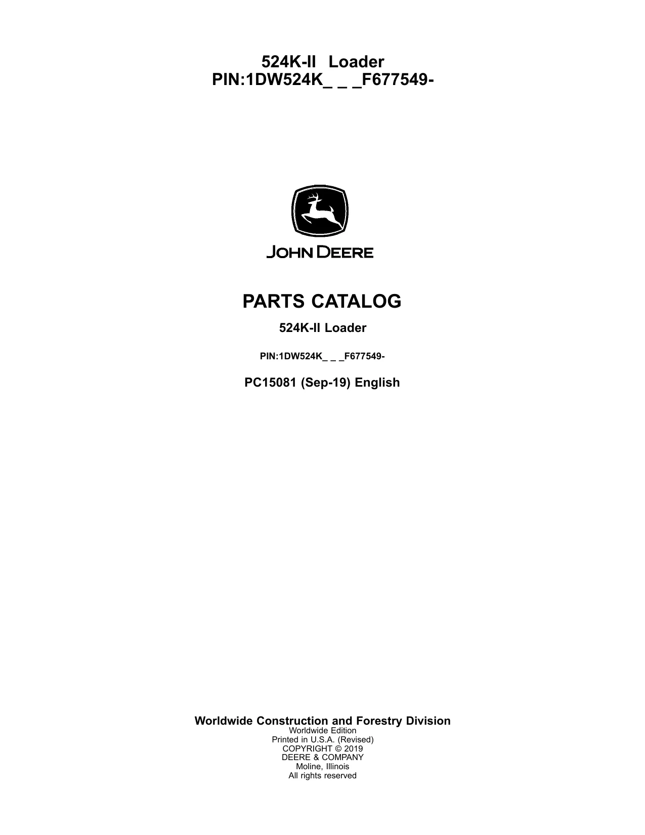 Instant download John Deere Loader 524K-II Parts Catalog Manual!