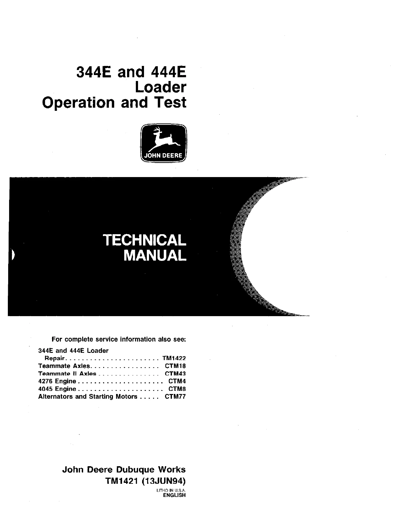 John Deere Loaders 344E 444E tm1421 Technical Manual