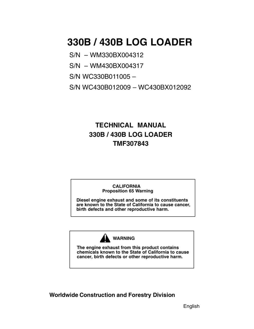 John Deere Log Loader 330B 430B tmf307843 Technical Manual