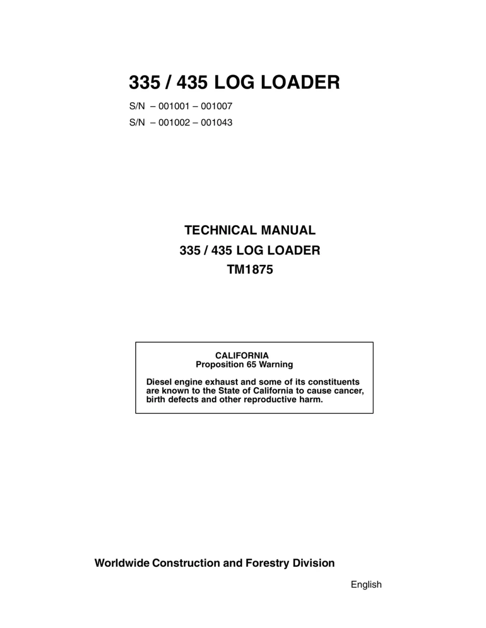 John Deere Log Loader 335 435 tm1875 Technical Manual