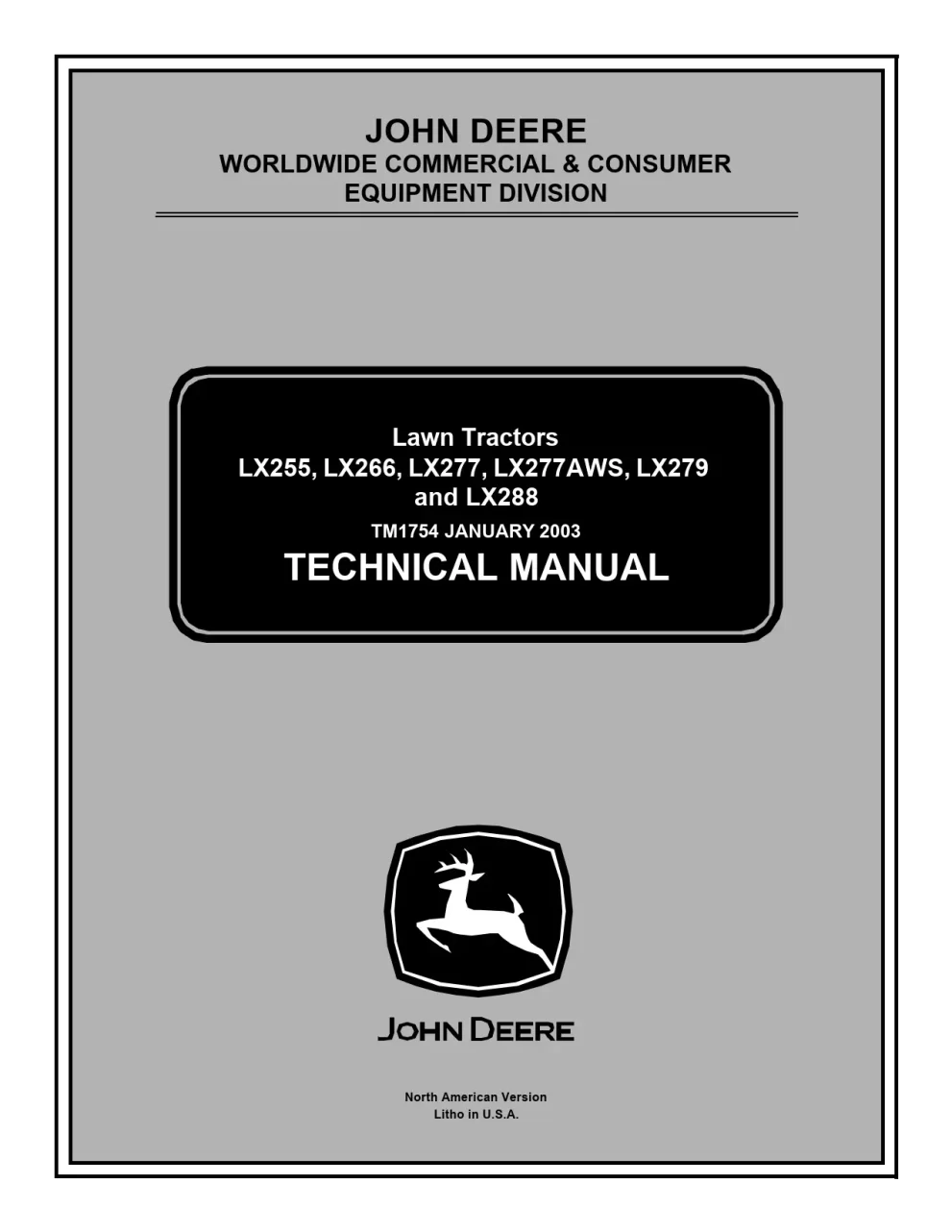 Instant download John Deere LX255, LX266, LX277, LX277AWS, LX279 and LX288 Lawn Tractors Service Repair Technical Manual!