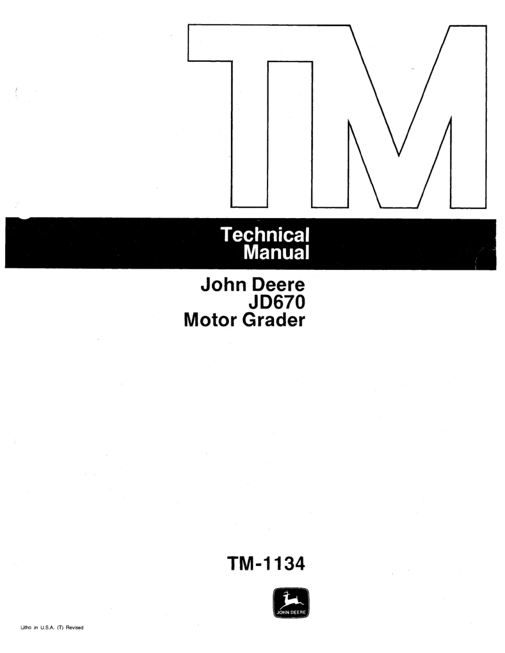 John Deere Motor Grader JD670 tm1134 Technical Manual