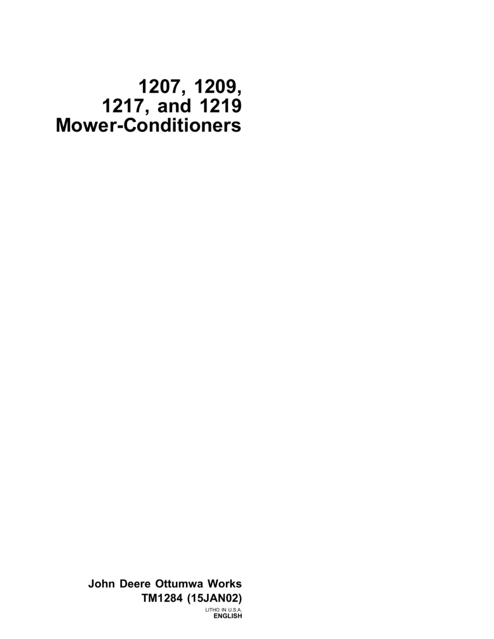 Instant download John Deere Mower Conditioners 1207 1209 1217 1219 tm1284 Technical Manual!