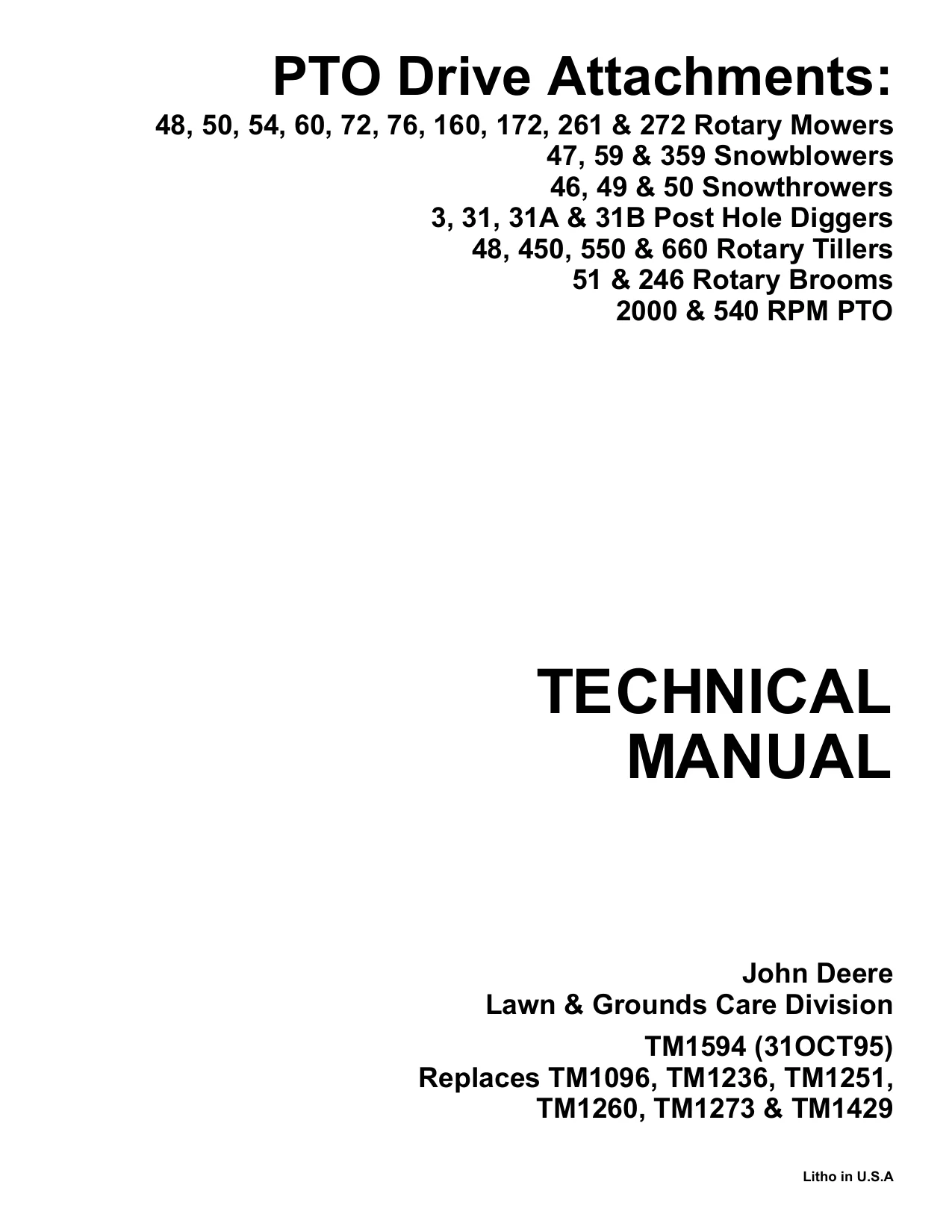 John Deere PTO Drive Attachments 48 -272 47-359 46-50 3-31B 48-660 51 246 2000 540 RPM PTO tm1594 Technical Manual