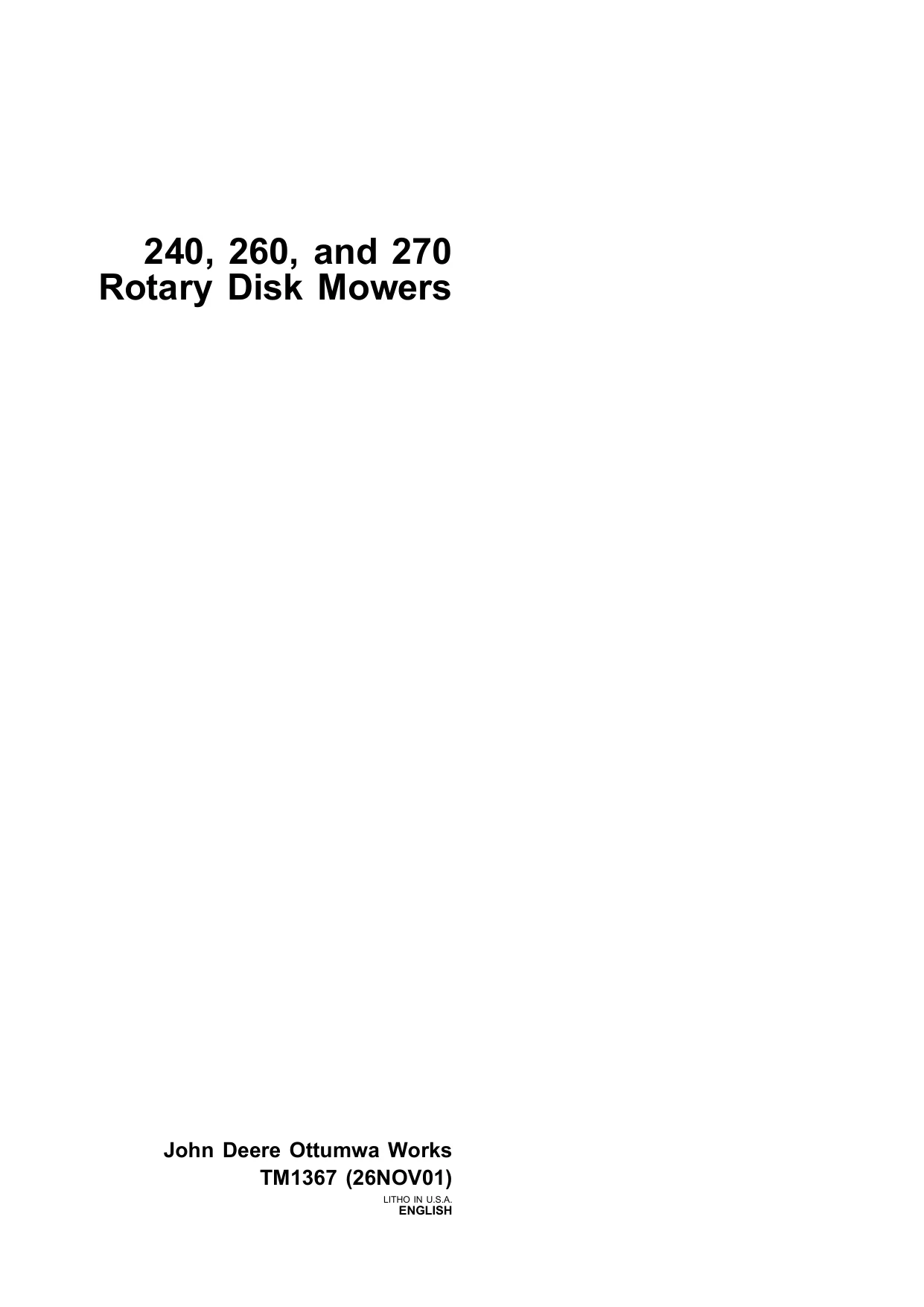 Instant download John Deere Rotary Disk Mowers 240 260 270 Technical Manual!