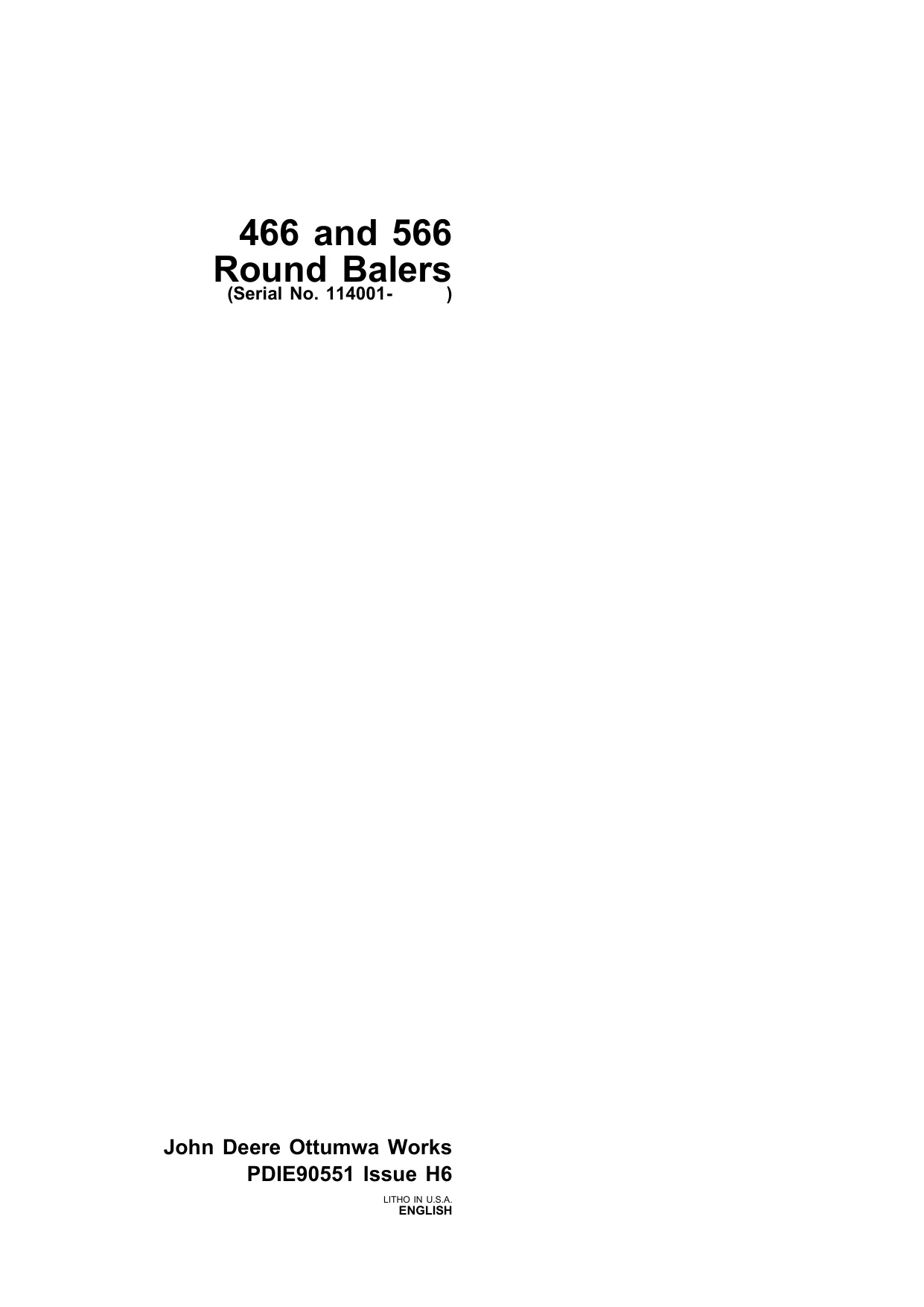 Instant download John Deere Round Bale 466 566r pdie90551 H6 Pre Delivery Instruction Manual!