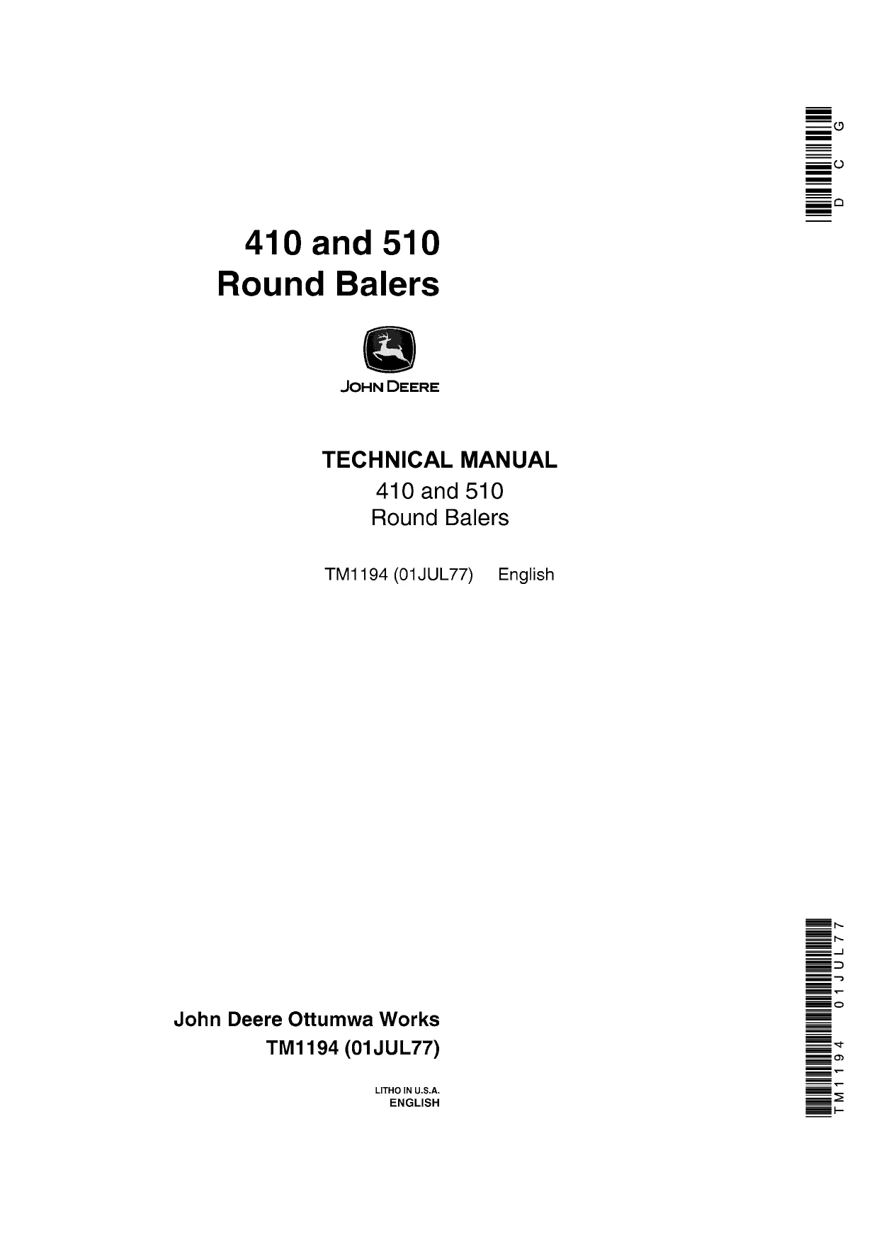 John Deere Round Baler 410 510 Technical Manual