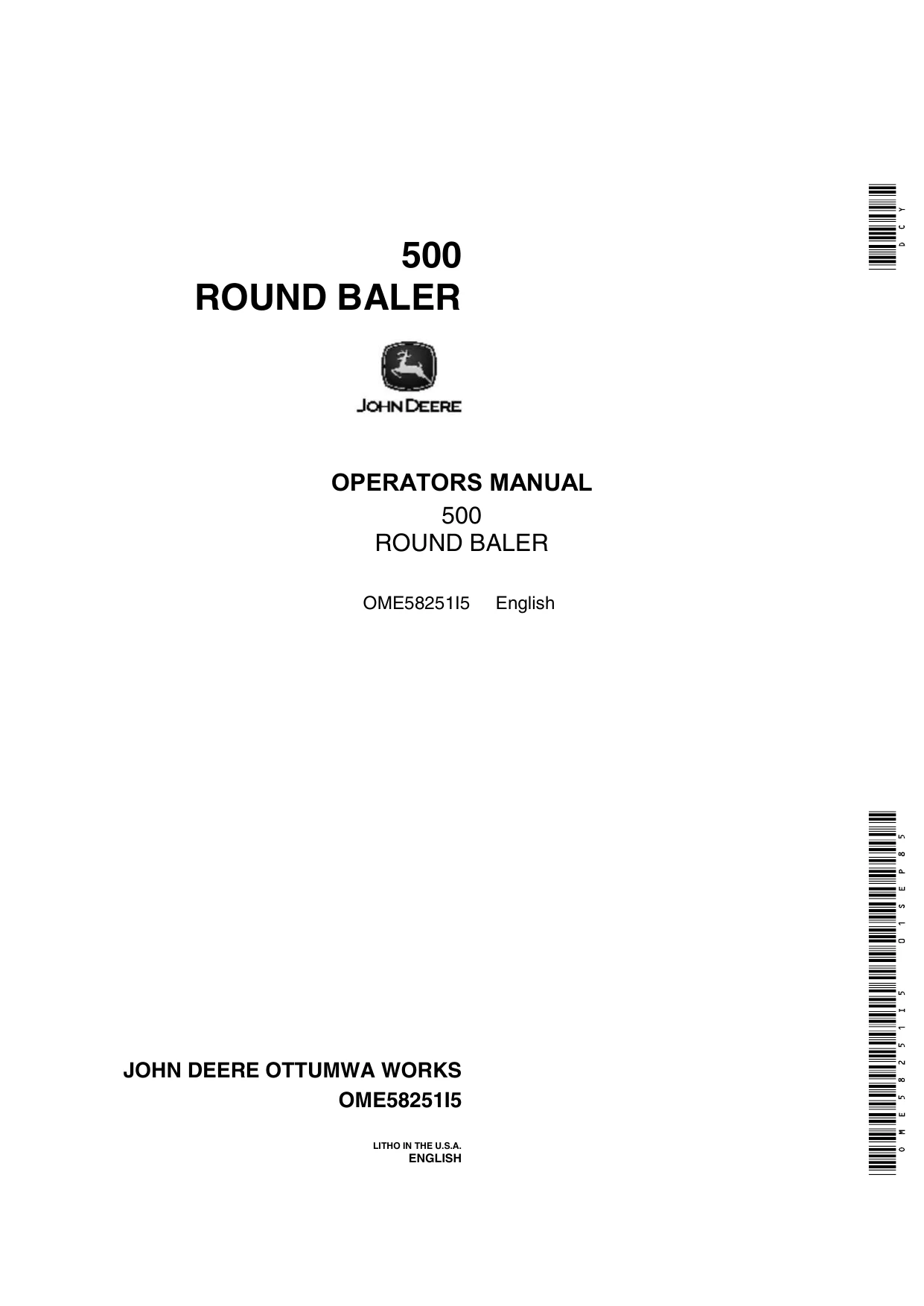 Instant download John Deere Round Baler 500 OPERATORS MANUAL!