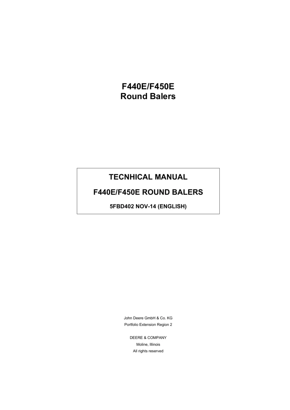 Instant download John Deere Round Balers F440E F450E Technical Manual!