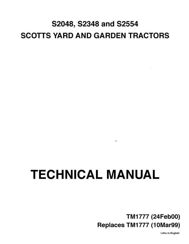 Instant download John Deere S2048,S2348 and S2554 SCOTTS YARD AND GARDEN Tractors Service Repair Technical Manual!