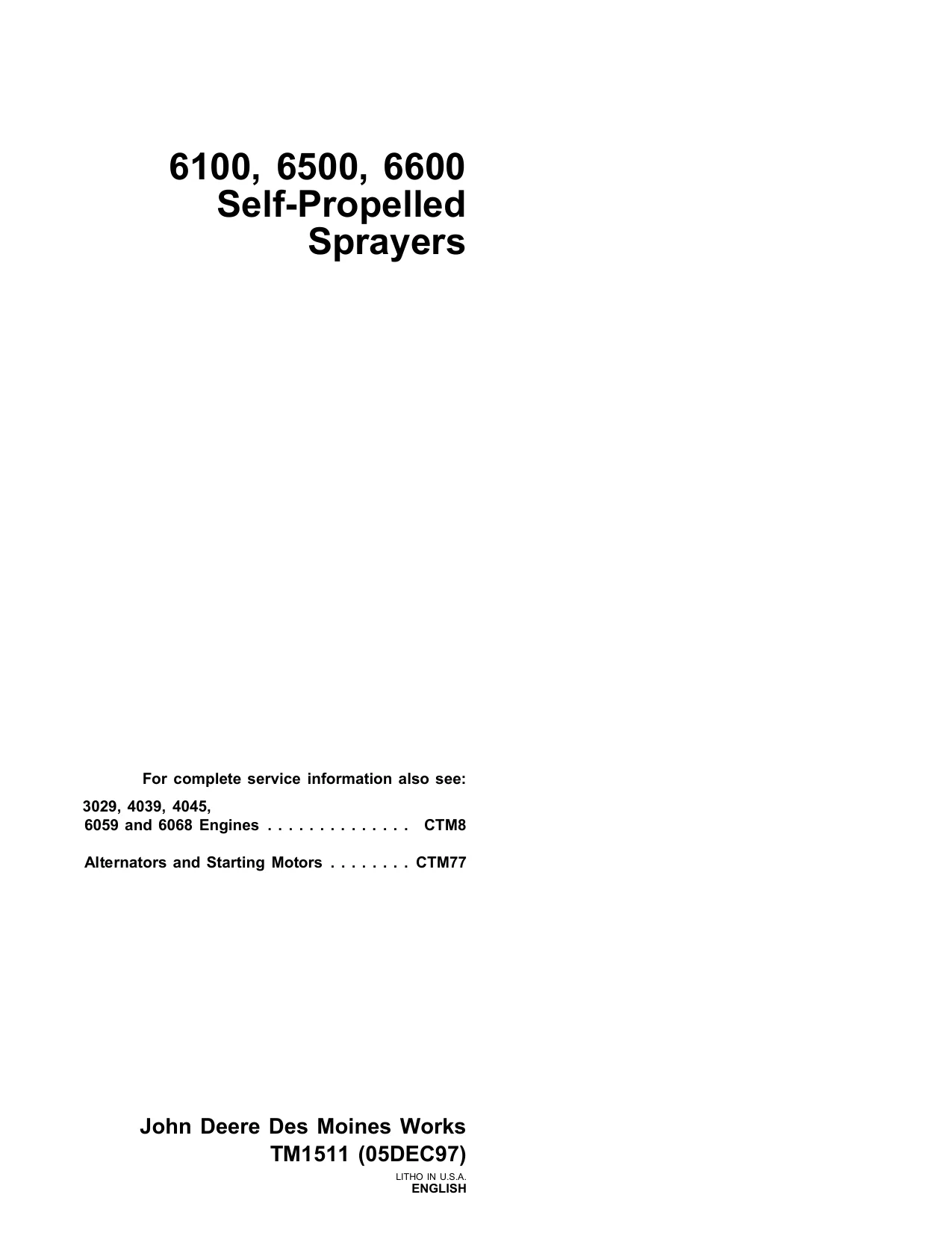 Instant download John Deere Self Propelled Sparyers 6100 6500 6600 tm1511 Technical Manual!