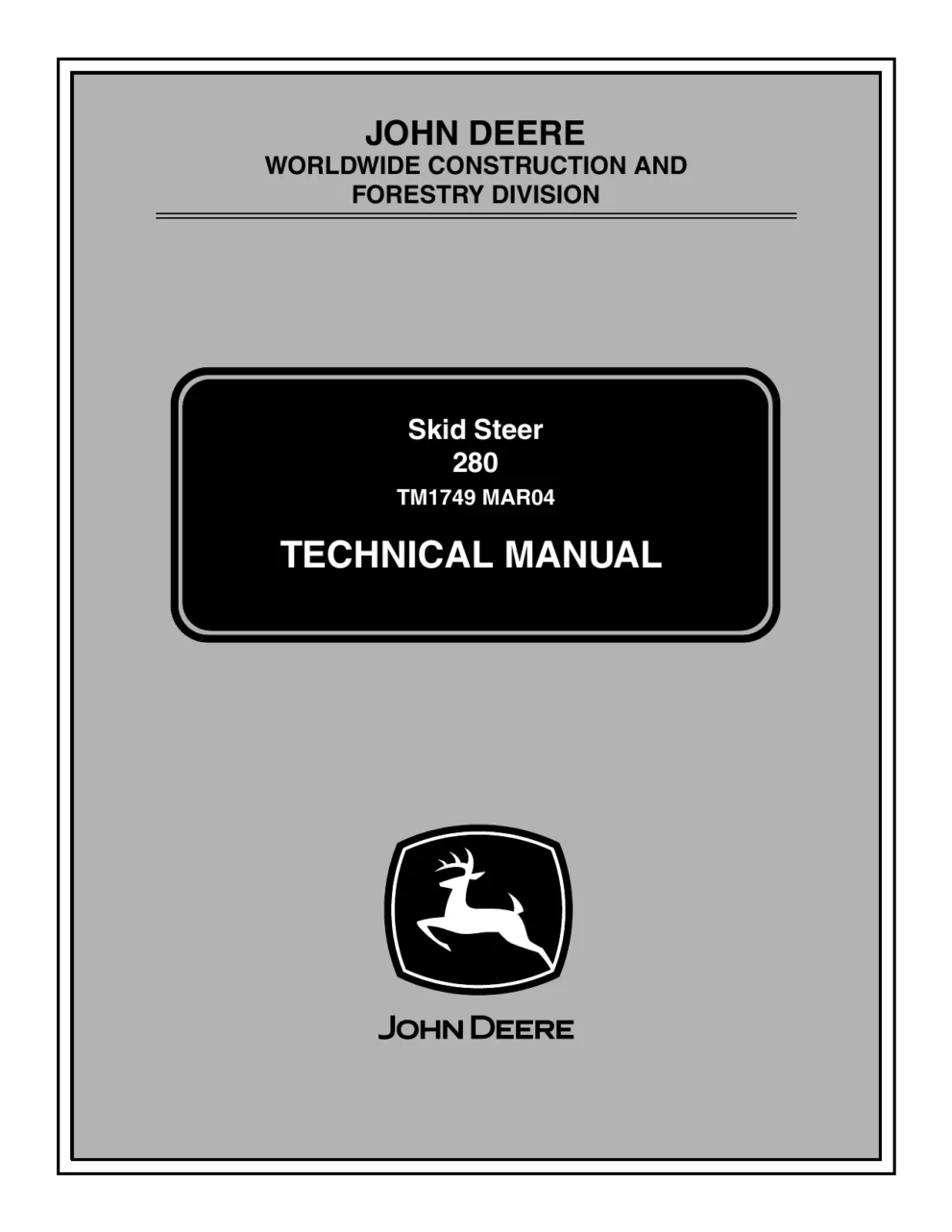 John Deere Skid Steer 280 tm1749 Technical Manual