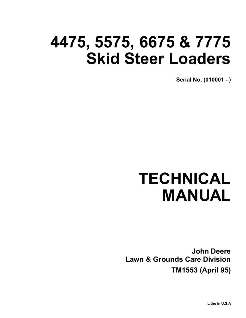 John Deere Skid Steer Loader 4475 5575 6675 7775 tm1553 Technical Manual